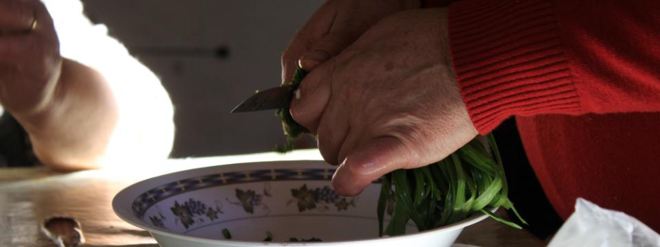 Στα ορεινά χωριά της Ελλάδος οι γυναίκες συνηθίζουν να ξεκινούν την μέρα του συλλέγοντας -είτε από τους λαχανόκηπους τους είτε από βουνό – τα υλικά που χρειάζονται για να ετοιμάσουν το καθημερινό τους τραπέζι. Οι γυναίκες αυτές έχουν βαθιά γνώση της Ελληνικής χλωρίδας και γνωρίζουν πώς να την χρησιμοποιήσουν για να μαγειρέψουν νόστιμα γεύματα με υψηλή διατροφική αξία.